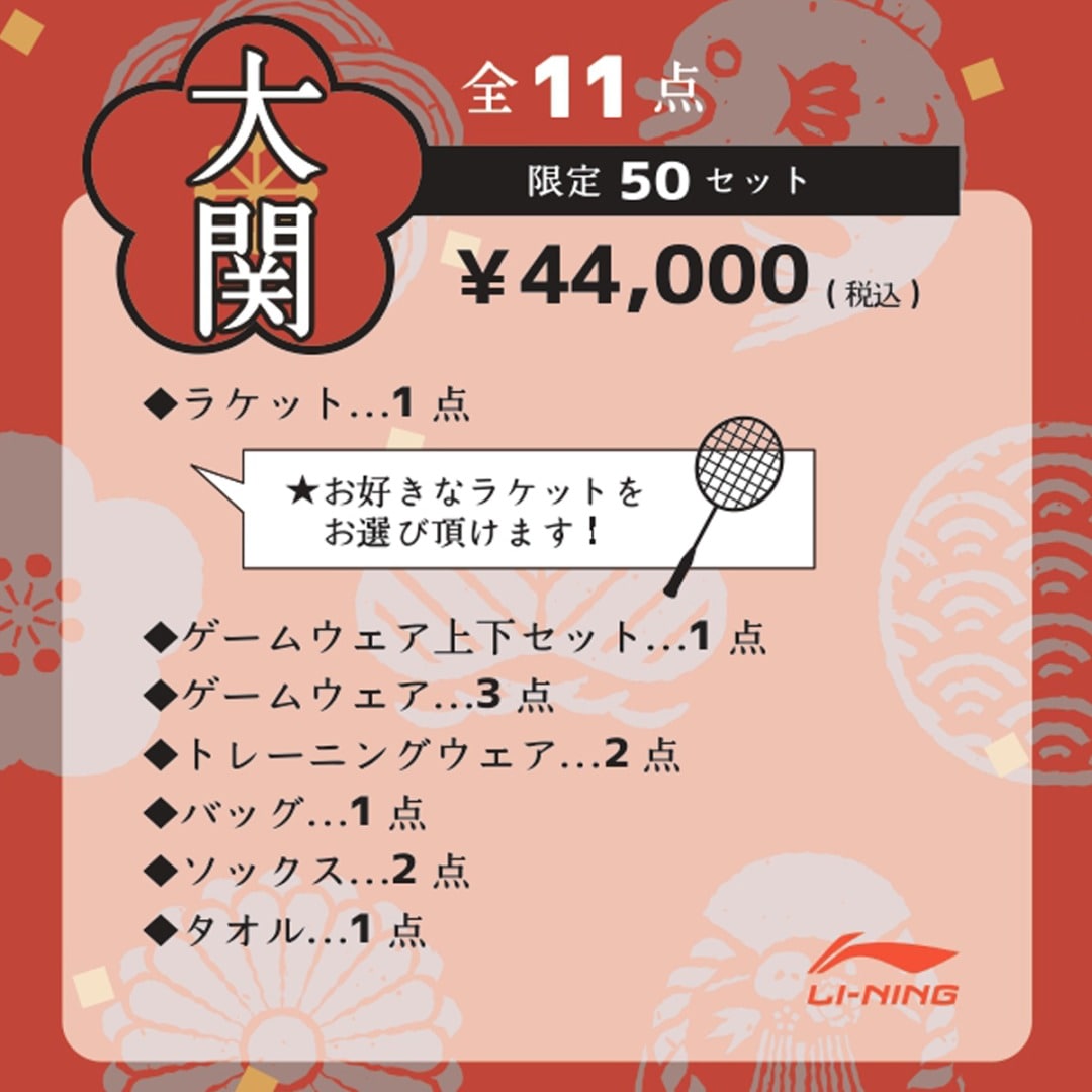 【後日出荷】全11点セット(大関) バドミントンラケット1本、ウェア、バッグ、他